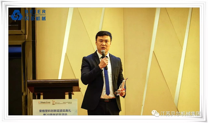 備受矚目的2018塑料行業(yè)-榮格技術(shù)創(chuàng)新獎頒獎典禮在3月7日于上海寶華萬豪酒店順利舉辦。此次評獎,榮格媒體聘請了專業(yè)的專家團(tuán)隊并結(jié)合網(wǎng)絡(luò)投票進(jìn)行綜合評定,充分做到了公平公正。通過激烈的角逐,最終有35個產(chǎn)品脫穎而出,獲獎企業(yè)包括:海天、精誠、貝爾機(jī)械、陶氏、博創(chuàng)、恩格爾、威猛巴頓菲爾等國內(nèi)外知名企業(yè)。江蘇貝爾機(jī)械憑借PVC-O管材智能生產(chǎn)線,榮獲2018年榮格技術(shù)創(chuàng)新獎。江蘇貝爾機(jī)械市場部司沛銘先生,代表公司出席領(lǐng)獎,并發(fā)言。此次獲獎是江蘇貝爾機(jī)械連續(xù)第五次獲獎,感謝榮格評審團(tuán)和各行業(yè)的信任與支持。PVC-O管材智能生產(chǎn)線是公司中外研發(fā)團(tuán)隊合力研發(fā)的,擁有完整的知識產(chǎn)權(quán)。創(chuàng)新力是制造能力,研發(fā)實力,并在正確的市場理念領(lǐng)導(dǎo)下誕生的碩果。這正是因為公司每年在研發(fā)方面投入巨大,并積極引進(jìn)海內(nèi)外人才,從而能夠每年都有創(chuàng)新產(chǎn)品面世,并取得驕人的銷售業(yè)績。110-630mm PVC-O管材智能生產(chǎn)線是公司新一代的節(jié)能環(huán)保生產(chǎn)線。在節(jié)能方面做到了壓力損失最小化、電力消耗低。在環(huán)保方面百分百可回收原料最經(jīng)濟(jì)化生產(chǎn)、管道結(jié)實抗降解,避免泄露。相比于傳統(tǒng)的PVC擠出生產(chǎn)線,無論是在產(chǎn)能效率還是綠色環(huán)保,都有了顯著的提高。目前已有25條生產(chǎn)線服務(wù)于國內(nèi)外有實力的廠家,隨著技術(shù)的進(jìn)一步完善,公司將不斷挑戰(zhàn)更小管徑和更大管徑,來適應(yīng)不同客戶的需求,為客戶創(chuàng)造出更大的價值。塑料行業(yè)是個朝陽行業(yè),也是一個時刻充滿創(chuàng)新的行業(yè),我們感謝行業(yè)里不同領(lǐng)域的企業(yè)為科技創(chuàng)新做出的杰出貢獻(xiàn),感謝榮格提供了行業(yè)里權(quán)威的平臺,感謝江蘇貝爾機(jī)械研發(fā)團(tuán)隊的辛勤工作,我們將再接再厲,堅定的沿著研發(fā)和創(chuàng)新的企業(yè)戰(zhàn)略前行,讓中國企業(yè)名列世界著名品牌之林。