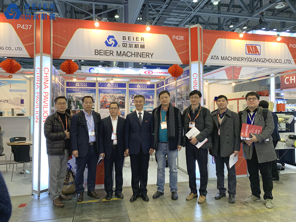剛開展,中國塑料加工工業(yè)協(xié)會理事長朱文瑋、副理事長/秘書長 王占杰 就來到了中國展區(qū),為中國參展企業(yè)加油。貝爾機械集團常務(wù)副總裁劉峰向協(xié)會領(lǐng)導介紹了貝爾的業(yè)務(wù)范圍,技術(shù)動態(tài),市場發(fā)展等情況。一早就專程趕來的貝爾韓國客戶也說明了貝爾機械在韓國以及亞太市場的知名度。